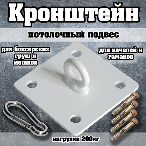 Кронштейн, универсальный подвес. В зависимости от назначения может крепится на стену или потолок. Подвес представляет собой стальную пластину толщиной 4 мм и приваренным кольцом. Прочный сварной шов, позволяет выдерживать нагрузки до 200кг. Таким образом кронштейн может использоваться в спортивных залах, а закрепив на потолок, можно подвешивать боксерские мешки и груши, канаты, гимнастические кольца.