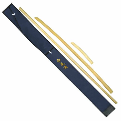 В комплект входит Дзё 130см (диаметр 2,6см) + Боккен 102см + Танто 29см + чехол нейлоновый темно-синего цвета с вышивкой Айкидо.