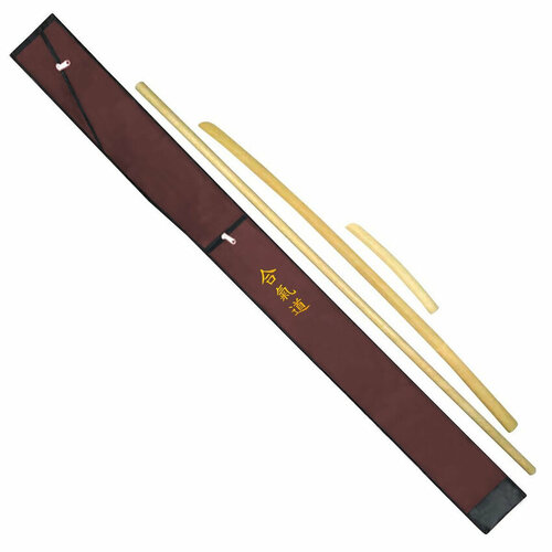 В комплект входит Дзё 120см (диаметр 2,4см) + Боккен 91см + Танто 25см + чехол нейлоновый бордовый c вышивкой Айкидо.