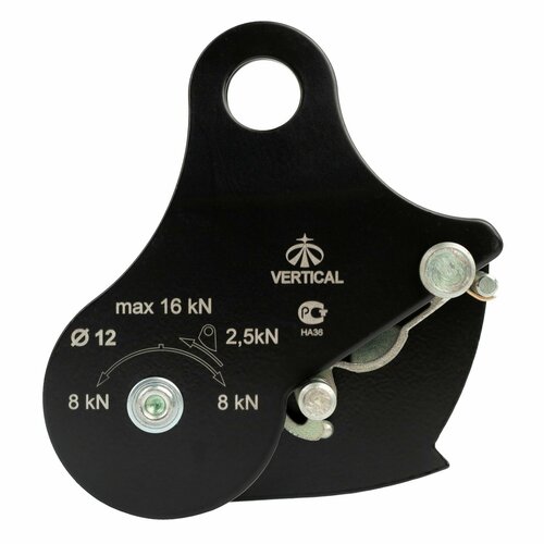 - Блок-зажим – многофункциональное устройство, предназначен для подъема тяжелых грузов. Может применяться в спасательных работах, для организации полиспастов. Стальной кулачек блокирует обратный ход веревки в устройстве. Работает с веревкой диаметром до 12 мм.
