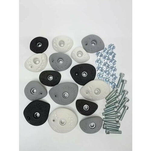Зацепы для скалодрома детские от ADALAR подойдут для создания как домашнего, так и уличного скалодрома. В данном наборе 5 зацепов размера М и 10 размера S. Их форма продумана и создана таким образом, чтобы комфортно ложиться в детскую руку и иметь очень удобный хват. Края умеренно закруглегные, чтобы не травмировать пальцы. Этот набор зацепов подойдёт для детей от 2 лет и старше. Наши зацепы для скалолазания изготовлены из искусственного камня – очень прочного и долговечного материала. Все наши изделия проходят пост отверждение, что гарантирует их безопасность и экологичность при использовании в жилых помещениях. Зацепы ADALAR устойчивы к воздействию солнечного света и атмосферных осадков, поэтому могут использоваться не только для занятий дома, но и на улице. Высокое качество наших зацепов давно уже оценили скалолазы спортсмены и любители. Зацепы Адалар вы можете встретить на профессиональных спортивных скалодромах, в школах и детских садах и различных развлекательных центрах. Поскольку мы - производители и основатели бренда, сами занимаемся скалолазанием, мы знаем, какими должны быть идеальные зацепы. Их форма и функциональность тщательно продуманы, удобны и эргономичны. Камни скалолазные имеют шероховатую поверхность, что позволяет крепко и надежно удерживать их рукой. Прочный материал и надежное крепление зацепов помогает им выдерживать огромные нагрузки – 150 кг и более. Наши зацепы подходят для взрослых и детей. Монтаж зацепов очень простой, и не потребует специальных навыков. Вы сможете самостоятельно создать свой домашний скалодром. Также, скалодром зацепы можно использовать как турник для подтягивания. В комплект входит 15 скалодромных зацепов и крепёжный набор: болты М10 с внутренним шестигранником и врезные гайки для крепления на фанеру толщиной до 21мм.