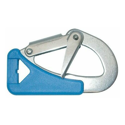 Карабин страховочный (10246174). Карабин с дополнительной защитой от самопроизвольного открытия. Для открытия основного язычка карабина требуется нажать надополнительную подпружиненную защелку, что практически невозможно сделать случайным движением. Может применяться для изготовления страховочных линий и обвязок.