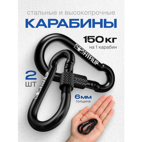 Карабины FITFILIP с муфтой 2 шт 6мм универсальные металлические