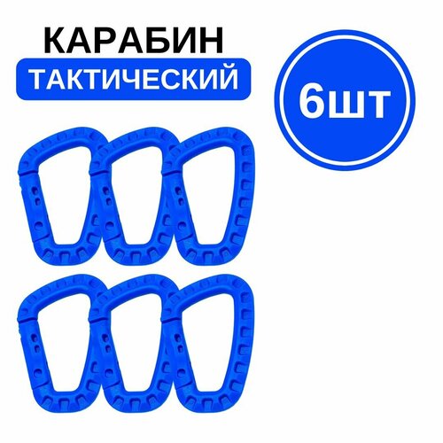 Тактический карабин пластиковый (ABS пластик) 6 шт / Туристический вспомогательный карабин, синий, 6шт