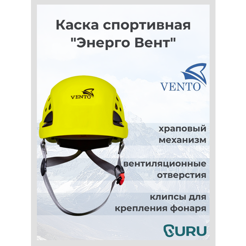 Каска защитная VENTO "Энерго Вент" для альпинизма и скалолазания Цвет Желтый (Спортивная), 490 г.