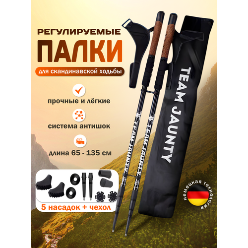 Палки для скандинавской ходьбы и треккинга - идеальный выбор для любителей активного отдыха на природе! Легкие, изготовлены из алюминия, устойчивые к коррозии, обеспечивают легкость движений на любом пути. Скандинавские палки для ходьбы оснащены бамбуковым темляком, который надежно фиксирует запястье и предотвращает соскальзывание рук. Идеальный вариант для пожилых мужчин и женщин. Наша телескопическая модель позволит вам легко регулировать длину в зависимости от вашего роста и типа поверхности - будь то горы, лес или ледяные поля. Палки цельные женские и мужские складные 2 шт (всего 65 см в сложенном виде), легко помещаются в чехол, который идет в комплекте, его удобно брать с собой в поездки и хранить дома. Надежные и прочные, они обеспечат вам уверенность и поддержку в любых условиях - будь то ходьба по горным тропам или прогулка по лесным дорожкам. В комплект входят насадки для разных типов поверхностей: асфальта, снега, грязи или песка, чтобы прогулки были комфортными при любых условиях. В сложенном состоянии длина составляет всего 65 см, а максимальная - 135 см. Длина палок регулируется под рост и фиксируется при помощи кручения корпуса по/против часовой стрелки. На выдвигающейся части палки нанесена разметка-линейка, что помогает настроить длину максимально точно. Больше увеличивать длину секции не нужно. Встроенная система антишок (antishock) снижает ударную нагрузку на суставы до 30%, защищая колени и кисти рук. Это делает палочки незаменимыми для людей с остеохондрозом, ревматизмом и сколиозом. Используйте их для прогулок, занятий спортом или для гор и походов – прочная конструкция выдерживает активные нагрузки. Отличный подарок для родителей, бабушек и дедушек, друзей или близких на 23 февраля и 8 марта. Ваши прогулки станут более безопасными, а активный образ жизни – еще доступнее! Не упустите возможность приобрести качественные Скандинавские палки с удобной регулировкой и стильным дизайном!