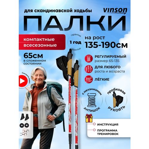 Особенностью этих палок является их телескопическая конструкция, которая позволяет варьировать длину палок от 65 до 135 см, что делает их подходящими для разных пользователей.