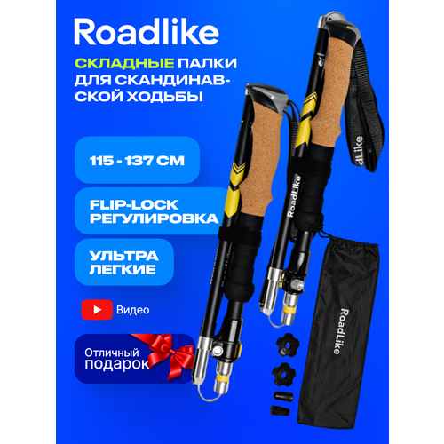 Ультракомпактные палки для скандинавской ходьбы RoadLike Compact - легкие и удобные складные палки с полным комплектом необходимых аксессуаров и системой регулировки высоты палок до 137 см. Палки RoadLike - это доступное качество и передовые технологии. Удобство и долговечность конструкции, а также продуманная эргономика и стильный дизайн подарят Вам настоящее удовольствие от прогулок. Сложение до 35 см, комфортная пробковая ручка, удобные темляки, надежная фиксация деталей порадуют даже профессионалов. Прекрасно подходят для Российского климата, выдерживают большие нагрузки, мороз, лед, грязь, песок. Материал: легкий и прочный сплав алюминия 7075; Ручки: натуральная пробка; Высота палок: max 137 см; Победитовые наконечники; Комплектация: палки, 2 кольца для грунта, 2 резиновых наконечника, фирменный чехол, регулируемые темляки, полная инструкция с рекомендациями. Самые компактные Треккинговые палки на рынке РФ!