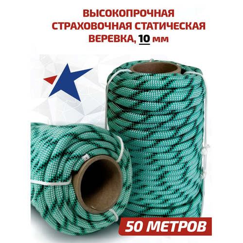 Веревка высокопрочная страховочная диаметр 10 мм 50м (gr), 48 прядей, 2400 кгс, тип А, У1