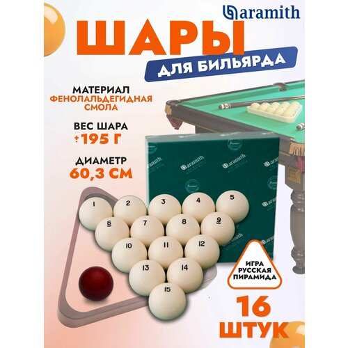 Вот уже несколько десятилетий бельгийские шары «Aramith» имеют безупречную репутацию благодаря своей прочности и идеальному качеству. Превосходное качество шаров «Aramith» является результатом сложного высокотехнологичного процесса, в ходе которого гармонично соединяются наилучшие характеристики фенолоальдегидной смолы с высочайшим профессионализмом бельгийских мастеров.