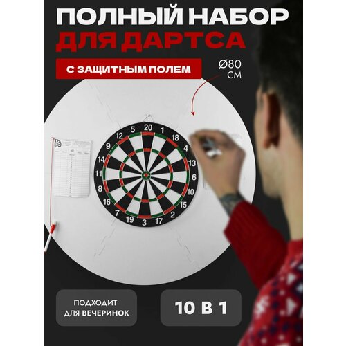 Большой профессиональный набор для игры в дартс с защитным полем и дротиками 80см