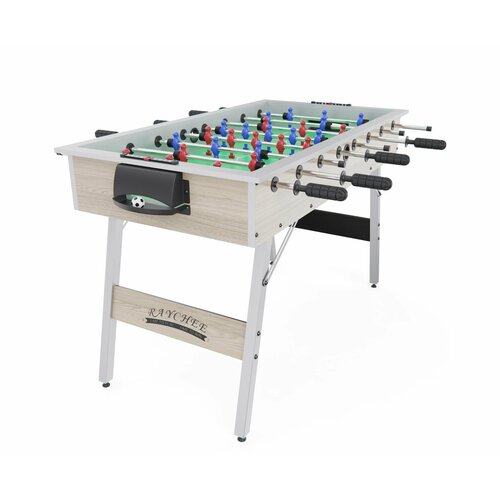 Игровая зона настольного футбола продумана до мелочей: бортики толщиной 12 мм, высотой 10,4 см обеспечивают комфортное ведение мяча, а толщина самого игрового поля — 3 мм — способствует плавному скольжению. В комплект входят 2 мяча диаметром 32 мм, что позволяет сразу начать игру. Фигурки игроков имеют высоту 96 мм и установлены на прочных металлических направляющих с удобными прорезиненными ручками.