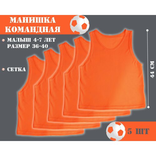 Манишка футбольная сетчатая (малыш) оранжевая (5 шт в упаковке) размер 36-40