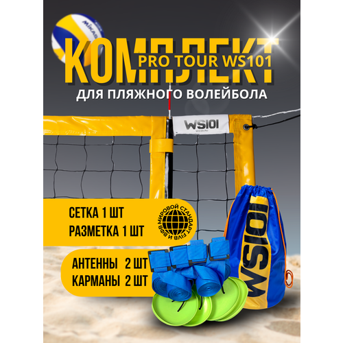 Комплект профессиональный сетка для пляжного волейбола 8,5м, 100*100мм + разметка 8*16м синяя + карманы + антенны + сумка WS101 Pro Tour KV.REZAC rus