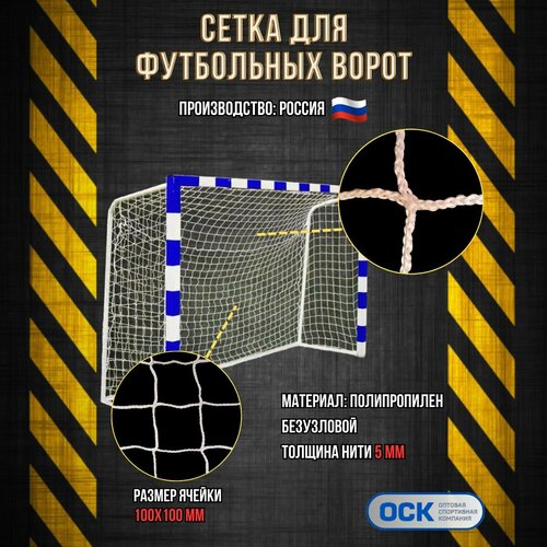 Сетка футбол, ячейка 100х100мм, нить 5мм, размер 2.5х7.5.2.0м