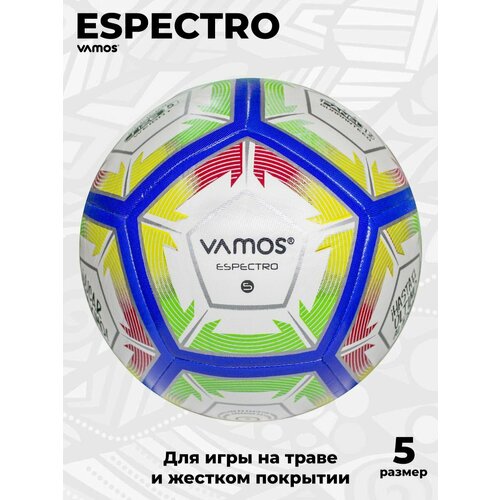 Тренировочный футбольный мяч Vamos ESPECTRO 5 размера разработан для проведения соревнований среднего уровня и интенсивных тренировок. Конфигурация 12-и панелей, соединенная машинной сшивкой, сокращает количество жестких швов до 40% по сравнению с традиционными 32-панельными мячами, это улучшает аэродинамику и повышает результативность ударов. Микро-рельефная поверхность спортивного мяча состоит из износостойкого термопластичного полиуретана (TPU), обеспечивая максимальное сцепление с мячом и контроль. В мяче для футбола использована бутиловая камера премиум класса с высокой степенью задержки воздуха. Сбалансированная 3-слойная система подкладок распределяет ударную нагрузку и является гарантией сферичности мяча. Рекомендован для игры на траве и жестком покрытии, на подарок.