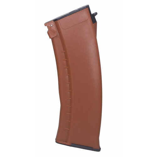 Механический магазин для автоматов АК-серии производства компании E&L. Модель el-1102-08 является страйкбольной моделью магазина АК-74 под 30 патронов 5.45мм. Магазин полностью изготовлен из пластика, окрашен в оранжевый цвет. Вместимость составляет 120 шаров, что очень неплохо для механы. Механический тип подач шаров (за счет пружины) перед бункерами имеет такие преимущества, как: постоянная подача шаров (без подкрутки вручную) и отсутствие шума шаров при передвижениях. Так же немаловажным плюсом для многих игроков является необходимость смены магазинов во время ведения огня, что повышает антуражность игры.