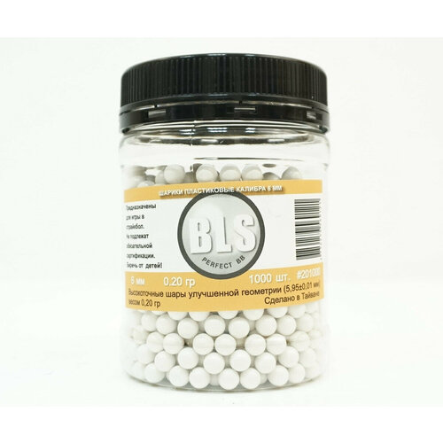 Пластиковые Шары для страйкбола Тайваньской фирмы BLS это отличные пульки 6 мм с улучшенной геометрией. Шары для страйкбола, благодаря тому что каждый шар прошел шлифованную обработку, исключают застревание шаров в пневматическом и страйкбольном оружие. Данные пульки 6 мм отлично подойдут как для простеньких пневматических пистолетов и автоматов рассчитанных на пули диаметром 6 мм так и для очень серьезных и дорогих приводов для страйкбола. Пули идут повышенного весового индекса. Вес каждой пули составляет 0,20 грам. В банке находится 1000 пуль шаров. Пули одноразовые и не рекомендуется к повторному использованию (по крайней мере в дорогих приводах для страйкбола).