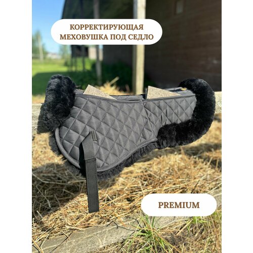 Меховушка под седло корректирующая Shkura-Dekor черная (премиум) L (62 см) на 4 кармана