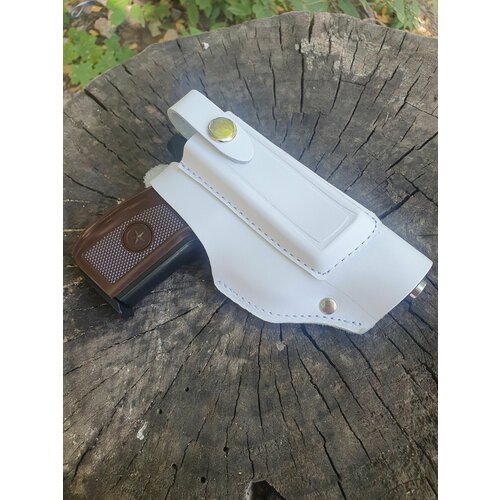 Кобура поясная белая с дополнительной обоймой из высококачественной кожи предназначена для ношения и быстрого извлечения пистолета. Модель прочна, продумана, хорошо приспособлена для быстрого извлечения оружия с минимальным количеством движений. Отличный выбор для сотрудников . Изготовлена из толстой натуральной кожи качественной выделки. Оно не впитывает влагу, не меняет характеристики при изменении температуры. Благодаря тому, что при изготовлении использовалась только высококачественная металлическая фурнитура, практически исключается вероятность механического повреждения. Отличный подарок коллеге - мужчине. Эта оперативная кабура - для пневматических и сигнальных пистолетов. Кобура оснащена страховочным хлястиком предотвращающим выскальзывание пистолета из кобуры. Открытие хлястика производится большим пальцем. Кобура имеет шлевку для ремня шириной до 40 миллиметров. Оптимальное расположение кобуры на поясе в районе 4 часов. Пенал кобуры рассчитан на стандартный восьмизарядный магазин