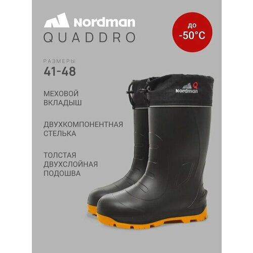 Сапоги NORDMAN QUADDRO -50 (без шипов) с вкладышем черные, черные с желтой подошвой, Размер: 42