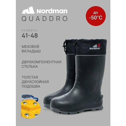 Сапоги NORDMAN QUADDRO -50 (с шипами) с вкладышем черные, с серой подошвой, Размер: 45