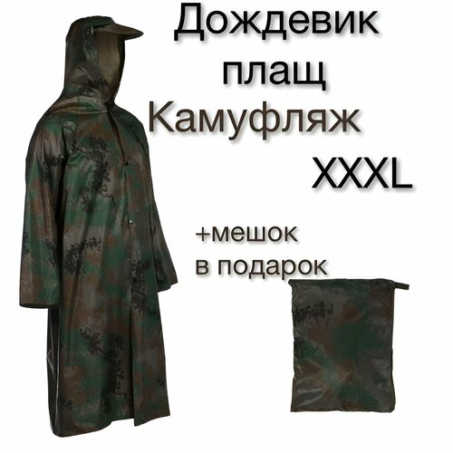 Дождевик с кнопками камуфляж, Плащ дождевик с капюшоном "Камуфляж"