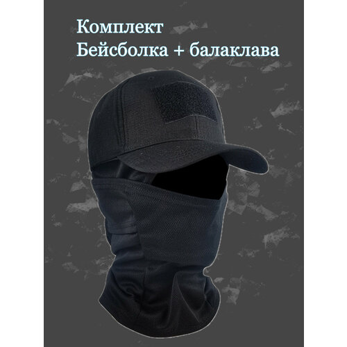 Кепка тактическая черная военная на липучке + балаклава тактическая черная тонкая