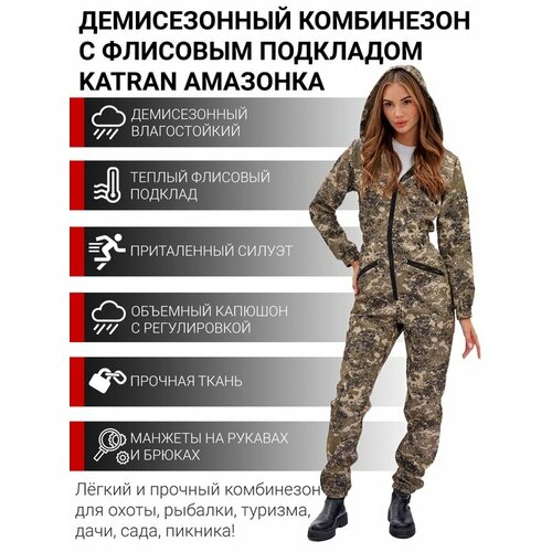 Комбинезон женский костюм на флисе осенний для охоты и рыбалки KATRAN амазонка полофлисовый (хаки КМФ), Размер: 44-46