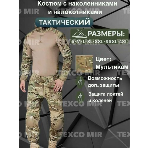 Тактический маскировочный костюм , военная форма с наколенниками и налокотниками предназначен для активных мужчин, которые любят проводить время на природе. Этот костюм мужской идеально подходит для рыбалки, охоты, туризма, и других наружных видов деятельности, таких как повседневной носки в качестве военной формы, тренировочный, и как рабочая одежда. Является удачным вариантом для экипировки команд в военно-тактических играх ( страйкбол, пейнтбол ) так как имеет отличную защиту от травм коленных и локтевых суставов. Защитная система сиз предохраняет уязвимые места от ударов и падений, например, при езде на велосипеде, катании на мотоциклах и квадроциклах и в момент боевых действий. Летний костюм униформа состоит из куртки (тактическая боевая рубаха с защитой локтей) и тактические брюки с защитой коленей, изготовленных из плотной ткани. Спецодежда мужская имеет много карманов для хранения различных предметов. На рукавах и ногах есть регулируемые манжеты с застежками на липучках. На коленях предусмотрены наколенники из прочной ткани с дополнительной защитой. Этот камуфляжный костюм горка демисезонный отлично подходит для разных сезонов, особенно на весну и лето, а в зимний периуд одеться по теплее. Благодаря плотни прочной ткани, он защищает от ветра и дождя, но также достаточно теплый, легкий и удобный для активного отдыха. Доступны размеры для мужчин разного телосложения. Костюм мох изготовлен в цветах хаки с зеленым камуфляже. Тактический костюм джинтенг мультикам - отличный выбор для тех, кто ценит комфорт и функциональность. Это прочная и надежная одежда, которая прослужит вам долгие годы, и заменит многие вещи в вашем гардеробе. Куртка имеет много карманов. Плотный подклад и манжеты на липучках на рукавах не дадут холоду и ветру проникнуть под одежду. Брюки имеют пояс с эластичной тесьмой и шнуровку для регулировки объема, боковые карманы, задние карманы. В комплекте с тактическим костюмом вкпо идут два наколенника, и два подлокотника. Костюм изготовлен из плотной рип-стоп ткани, которая обеспечивает тепло и защиту, и гарантируют надежность и долговечность изделия. Размерный ряд маскхалат: от М до XXXL. Тактический костюм - это очень функциональная и удобная одежда, которая не подведет вас в походах, на рыбалке и охоте. Боевая армейская рубаха из дышащего хлопка - даже при активном передвижении в полном обмундировании, человек будет чувствовать себя уверенно, по этому он подойдет как спецовка рыболовный и охотничий весенний спец костюм. Прослужит вам долгие годы и станет отличным помощником в ваших активных занятиях на природе.