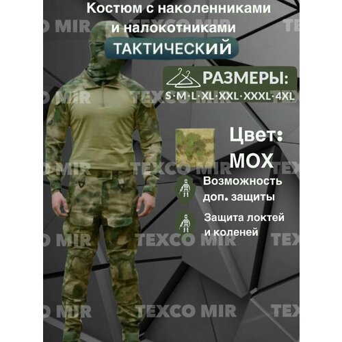 Тактический маскировочный костюм , военная форма с наколенниками и налокотниками предназначен для активных мужчин, которые любят проводить время на природе. Этот костюм мужской идеально подходит для рыбалки, охоты, туризма, и других наружных видов деятельности, таких как повседневной носки в качестве военной формы, тренировочный, и как рабочая одежда. Является удачным вариантом для экипировки команд в военно-тактических играх ( страйкбол, пейнтбол ) так как имеет отличную защиту от травм коленных и локтевых суставов. Защитная система сиз предохраняет уязвимые места от ударов и падений, например, при езде на велосипеде, катании на мотоциклах и квадроциклах и в момент боевых действий. Летний костюм униформа состоит из куртки (тактическая боевая рубаха с защитой локтей) и тактические брюки с защитой коленей, изготовленных из плотной ткани. Спецодежда мужская имеет много карманов для хранения различных предметов. На рукавах и ногах есть регулируемые манжеты с застежками на липучках. На коленях предусмотрены наколенники из прочной ткани с дополнительной защитой. Этот камуфляжный костюм горка демисезонный отлично подходит для разных сезонов, особенно на весну и лето, а в зимний периуд одеться по теплее. Благодаря плотни прочной ткани, он защищает от ветра и дождя, но также достаточно теплый, легкий и удобный для активного отдыха. Доступны размеры для мужчин разного телосложения. Костюм мох изготовлен в цветах хаки с зеленым камуфляже. Тактический костюм джинтенг мультикам - отличный выбор для тех, кто ценит комфорт и функциональность. Это прочная и надежная одежда, которая прослужит вам долгие годы, и заменит многие вещи в вашем гардеробе. Куртка имеет много карманов. Плотный подклад и манжеты на липучках на рукавах не дадут холоду и ветру проникнуть под одежду. Брюки имеют пояс с эластичной тесьмой и шнуровку для регулировки объема, боковые карманы, задние карманы. В комплекте с тактическим костюмом вкпо идут два наколенника, и два подлокотника. Костюм изготовлен из плотной рип-стоп ткани, которая обеспечивает тепло и защиту, и гарантируют надежность и долговечность изделия. Размерный ряд маскхалат: от М до XXXL. Тактический костюм - это очень функциональная и удобная одежда, которая не подведет вас в походах, на рыбалке и охоте. Боевая армейская рубаха из дышащего хлопка - даже при активном передвижении в полном обмундировании, человек будет чувствовать себя уверенно, по этому он подойдет как спецовка рыболовный и охотничий весенний спец костюм. Прослужит вам долгие годы и станет отличным помощником в ваших активных занятиях на природе.