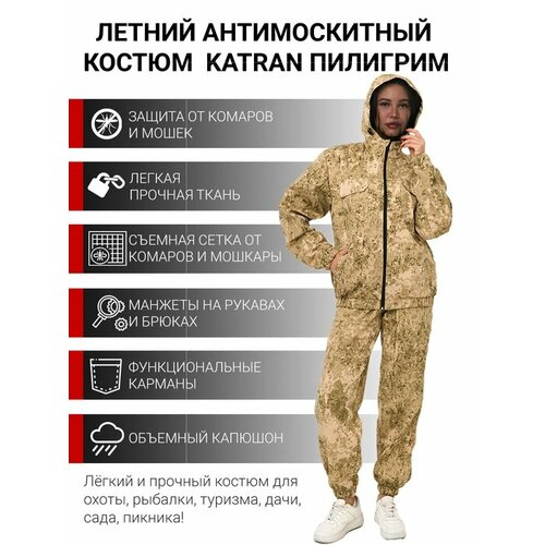 Костюм антимоскитный женский летний для охоты и рыбалки KATRAN пилигрим (Рип-стоп, песок КМФ), Размер: 40-42 Рост: 170-176