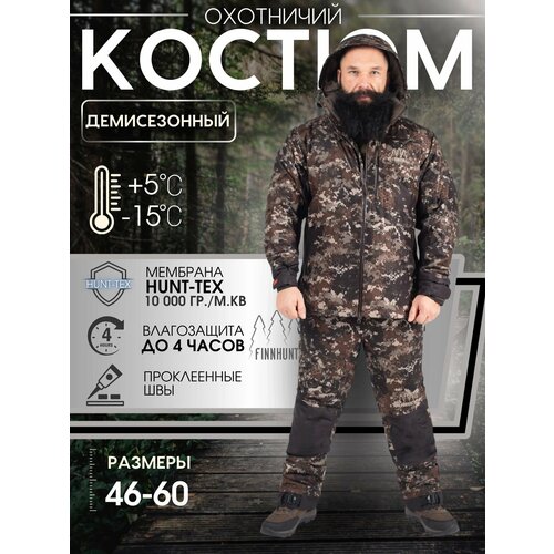Костюм камуфляжный тактический охотничий, рыболовный, туристический демисезонный и зимний, мужской FINNHUNT Reliable Padded Autumn Camo на мембране, куртка с капюшоном и штаны с карманами