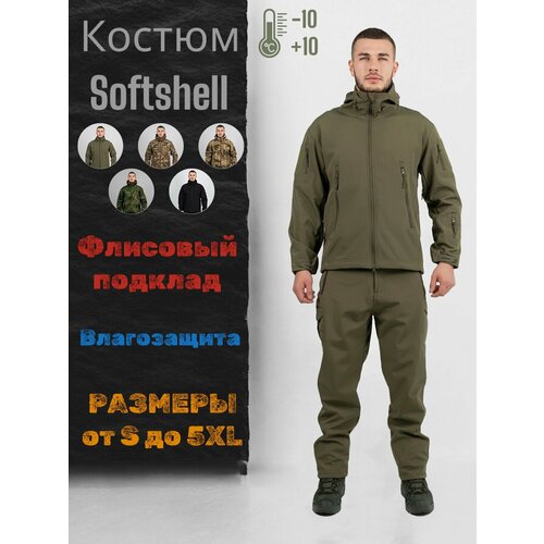 Тактический мужской демисезонный костюм Softshell оливковый 5XL