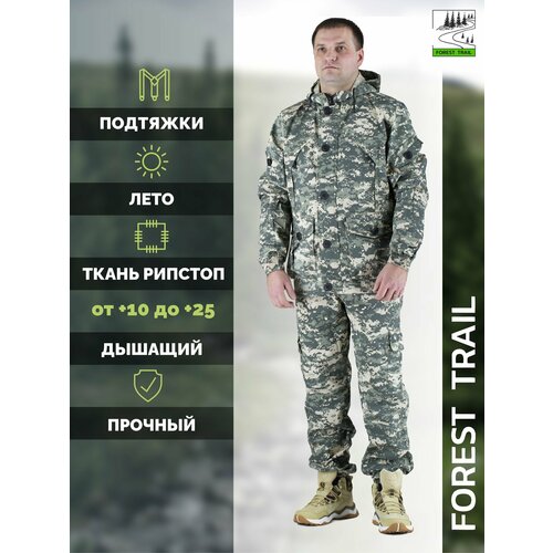 Летний костюм Forest trail позволит отлично провести время на природе. Горка костюм летний. Отлично подойдет для рыбалки, охоты и активного отдыха. Мужская военная форма. Всем известный и удобный костюм горка с подтяжками. В наличии есть различные камуфляжные расцветки, включая мох, цифру, пиксель и мультикам. Горка идет комплектом - куртка и штаны. Подойдет для подростков. Также у нас можно найти зимние и демисезонные (на весну и на осень) модели с подкладом из флиса. Камуфляжный костюм в стиле милитари. Есть большие размеры. Армейская тактическая экипировка. Костюм для леса и спорта изготовлен из ткани рип-стоп, усиленной армирующей нитью.