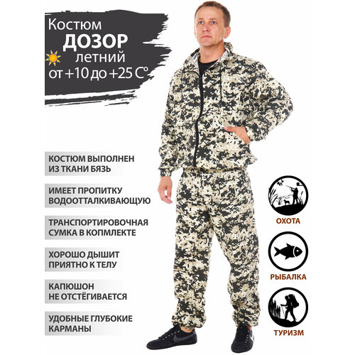Костюм мужской летний легкий камуфляжный для охоты и рыбалки, а также для актвиного отдыха, для туризма и похода в лес. Изготовлен костюм из ткани Бязь. Ткань отлично дышит, испарения тела хорошо впитывает и очень приятна к телу. Куртка прямого силуэта, укороченная, с центральной застежкой - молнией, с поясом на резинке. Капюшон втачан в горловину, не отстегивается. Спинка с отрезной кокеткой, полочки цельнокроенные. Боковые накладные карманы втачаны в боковой шов. Рукава втачные двухшовные, с манжетами на резинке. Низ куртки с притачным поясам на резинке. Брюки свободного покроя с притачным поясом на резинке, с 2-мя боковыми накладными карманами. Для охоты, рыбалки, туризма, для дачи, как спецодежда, страйкбол, пейнтбол, милитари военные игры, прогулок, активный отдых, камуфлированная одежда, рыбацкий, повседневный, работа на стройке, одежда для охраны, спортивный, рыболовный, спец одежда мужская рабочая, для леса, за грибами, военный, для мужчин, женщин, подростков