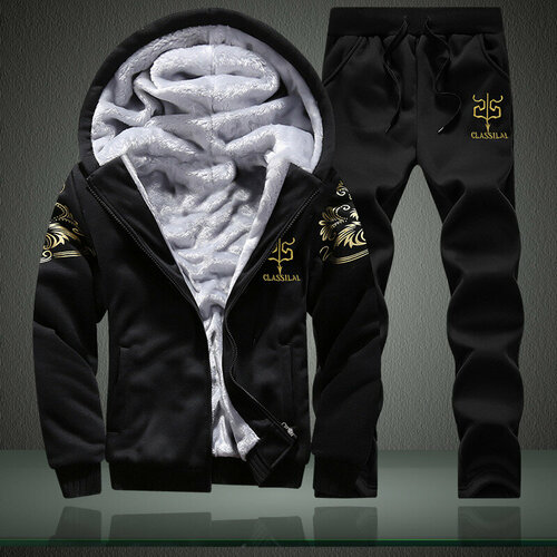 Этот мужской костюм на флисовой подкладке — отличный выбор для зимнего тепла благодаря своей всесторонней защите от холода. Толстая флисовая подкладка мягкая и приятная для кожи, быстро сохраняет тепло, обеспечивая длительное ощущение комфорта. Золотистый принт на плечах объемный и насыщенный, а полиэстеровая ткань приятна на ощупь, прочна и не образует катышков. Костюм оснащен высококачественными металлическими молниями, которые работают плавно и долговечны. В целом, костюм удобен и стилен, а детали, от ткани до фурнитуры, демонстрируют превосходное качество. Это отличная вещь на каждый день, сочетающая в себе тепло и практичность.