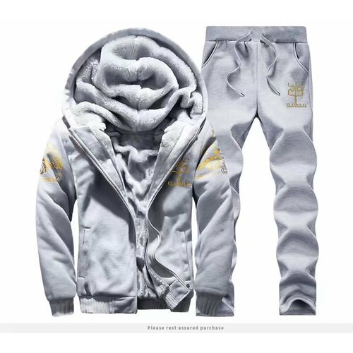 Этот мужской костюм на флисовой подкладке — отличный выбор для зимнего тепла благодаря своей всесторонней защите от холода. Толстая флисовая подкладка мягкая и приятная для кожи, быстро сохраняет тепло, обеспечивая длительное ощущение комфорта. Золотистый принт на плечах объемный и насыщенный, а полиэстеровая ткань приятна на ощупь, прочна и не образует катышков. Костюм оснащен высококачественными металлическими молниями, которые работают плавно и долговечны. В целом, костюм удобен и стилен, а детали, от ткани до фурнитуры, демонстрируют превосходное качество. Это отличная вещь на каждый день, сочетающая в себе тепло и практичность.