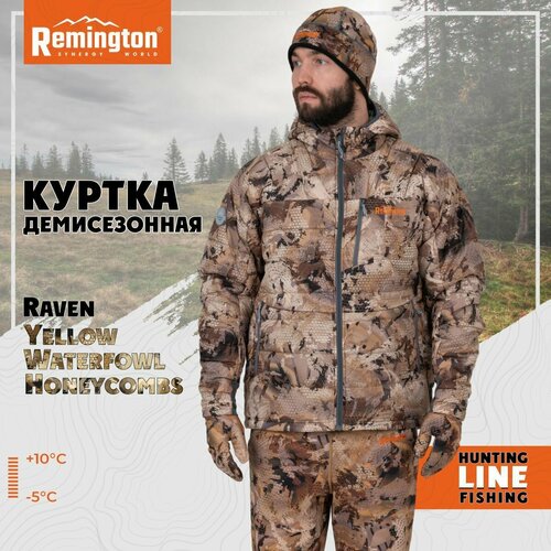 Куртка мужская Remington Raven Yellow Waterfowl Honeycombs от известного американского бренда. Remington - выбор тех, кто ценит соотношение достойного качества за приемлемые деньги. Куртка Remington Raven Yellow Waterfowl Honeycombs - практичный вариант, который идеально подойдет для охоты, рыбалки, туризма и других видов активного отдыха в демисезонный период. Модель рассчитана на комфортное ношение от +10 до -5 °С. Куртка Remington Raven Yellow Waterfowl Honeycombs изготовлена из прочной износостойкой, устойчивой к носке ткани. Плюс ко всему, наружный материал куртки дополнительно обработан водоотталкивающей пропиткой DWR, что обеспечивает защиту от влаги и повышает грязеотталкивающие свойства. Куртка для охоты Ремингтон Рэйвен имеет синтетический утеплитель, обеспечивающий теплоизоляционные свойства. Утеплитель не деформируется после стирки. Высокий ворот и глубокий регулируемый капюшон обеспечат надежную защиту от холодного воздуха. Модель оснащена карманами на молнии, благодаря которым можно распределить личные вещи небольшого размера. Куртка Remington Raven Yellow Waterfowl Honeycombs, сочетая в себе качество, комфорт и стиль, станет идеальным выбором для использования во время охоты, рыбалки и других видов активного отдыха.