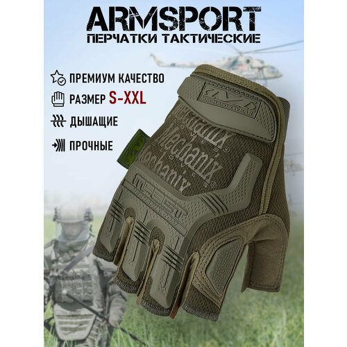 Перчатки тактические мужские без пальцев Armsport, укороченные, зеленые, M
