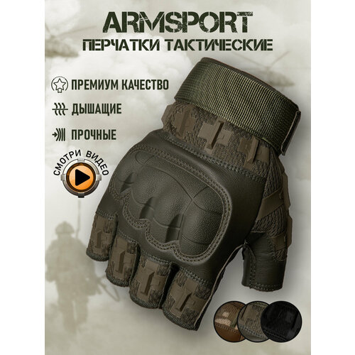 Перчатки тактические мужские без пальцев Armsport, зеленые М