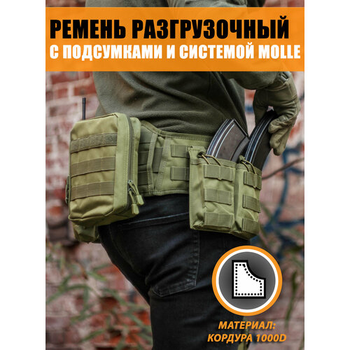 Тактический разгрузочный ремень с подсумками и системой Molle, Цвет: Оливковый