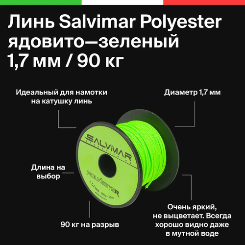 Линь Salvimar Polyester, 1.7 мм, 90 кг. на разрыв, для подводного ружья, подводной охоты, Ядовито-зеленый, цена за 1 метр