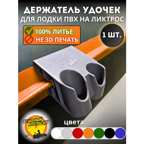 Держатель удочки двойной на ликтрос надувной лодки от торговой марки бешеный апельсин. Это держатель с двумя разнонаправленными отверстиями. В отличие от одинарного держателя, с этим держателем можно заниматься троллингом за счёт увеличенной ширины до 10см.
