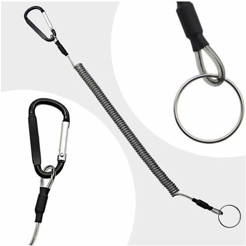 Пружинный шнур с карабином / страховочный тросик для инструментов и ножей / бейджа и ключей (105 см)
