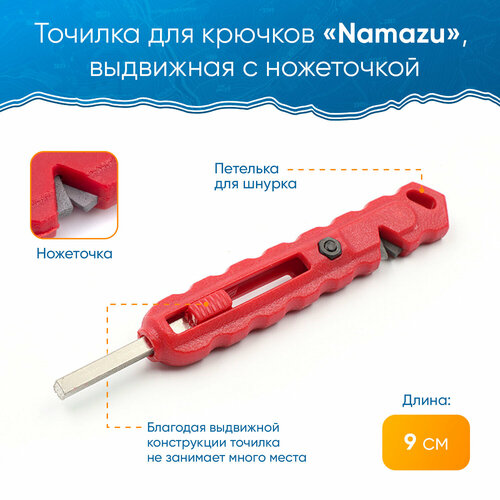 Точилка для крючков «Namazu N-GS03T» выдвижная с ножеточкой - поможет вернуть остроту жалу, и следовательно, продлить жизнь крючка и обеспечить более уверенные подсечки.