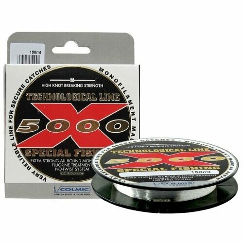Леска монофильная COLMIC X-5000 / Диаметр 0,185мм / Тест 5,05кг / Длина 150м / Цвет прозрачный