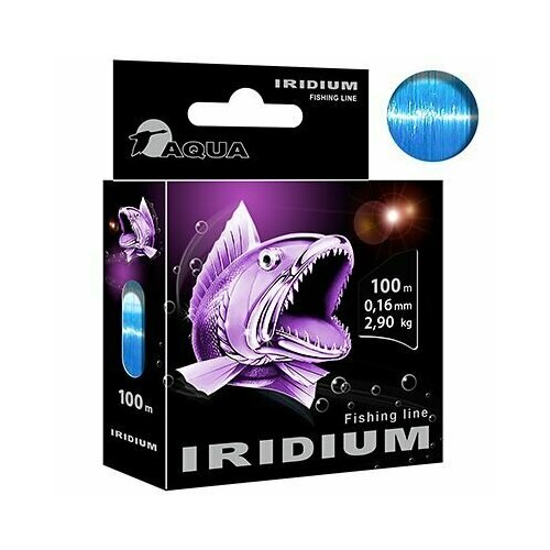 - Леска AQUA IRIDIUM выпускается в голубом цвете, в диаметрах от 0,16 до 0,40mm, что позволит подобрать подходящий вариант для любого вида ловли, будь то матчевая удочка, фидерное удилище, спиннинг или троллинговая снасть.