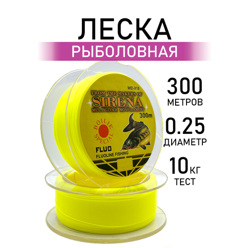 Леска рыболовная монофильная, разрывная нагрузка 10кг, диаметр 0,25мм, длина 300м