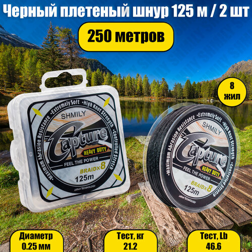 - Плетеный шнур Capture, 8 жил, черный 0.25 мм, 21.2 кг, 46.6 Lb, 125 м - 2 шт. (итого - 250 м)